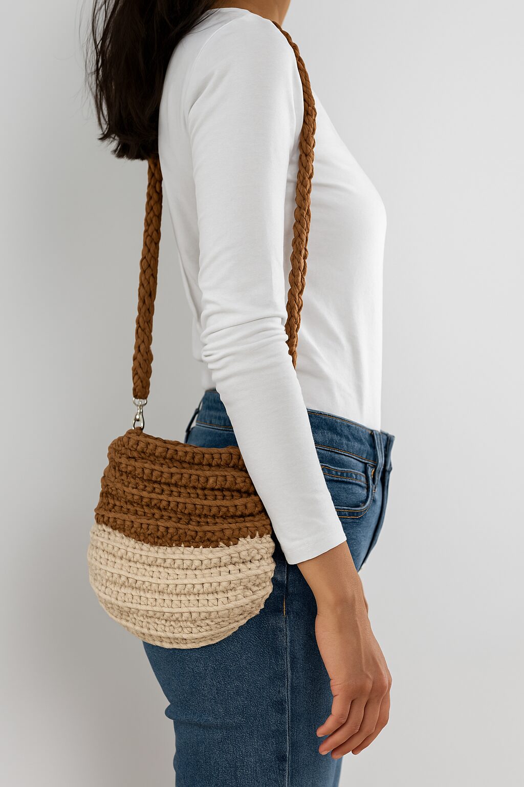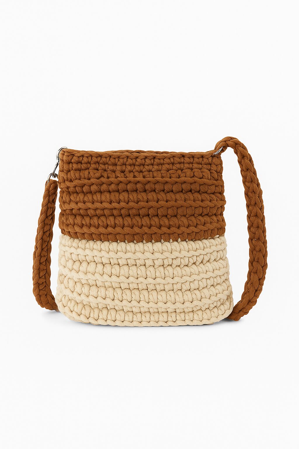 This unique bag is meticulously crocheted with premium, eco-friendly yarn in both classic white and earthy brown. Its sturdy, braided strap offers comfortable carrying, while the neutral tones are perfect for matching any modern or minimal outfit. Designed for durability, practicality, and styleβideal for daily use or gifting.
