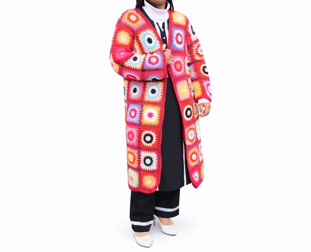 Add color and creativity to your winter wardrobe with our Rangeen Long Shrug, a beautifully handcrafted crochet layer designed for women who love bold and artistic fashion. Featuring a vibrant granny square patchwork pattern in rich multicolor tones, this shrug is a true statement piece.